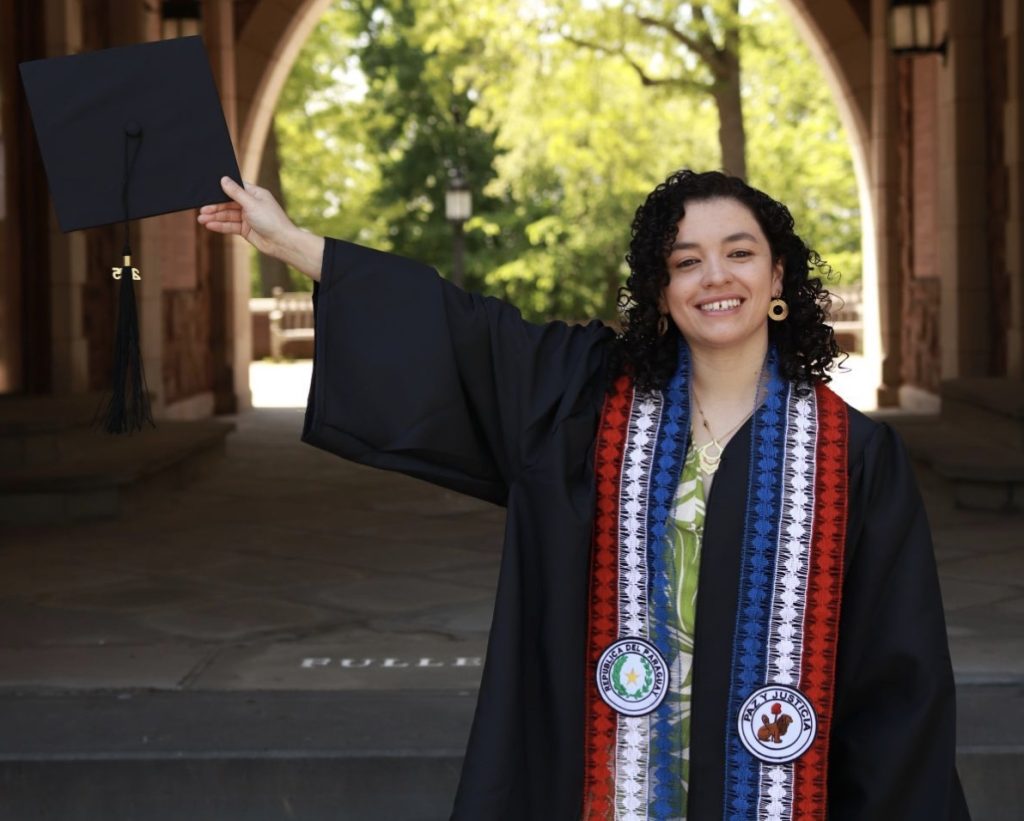Su historia familiar siempre fue una brújula. Creció junto a sus abuelos, su tía materna y su hermana. Las tardes de tereré con su abuela le enseñaron a valorar las oportunidades y a asumir cada una como una responsabilidad. Esas raíces profundas la acompañaron cuando llenó el formulario de UWC, que en ese entonces se entregaba en formato físico y cuya copia aún guarda hasta el día de hoy. Para ella, el proceso de selección, que describe, más que nada, como “un espacio de introspección”, marcó un antes y un después.